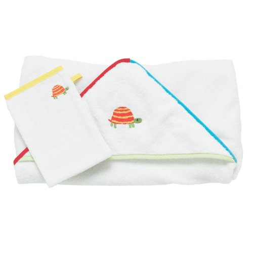 Have some bath time fun with your baby or toddler using our Embroidered Turtle Hooded Towel & Wash Mitt Set. This set includes one wash mitt and one hooded towel and features colorful piping and an embroidered turtle design. Made from incredibly soft zero twist Turkish cotton. Machine-wash warm separately using mild detergent, no bleach. Tumble dry on low.